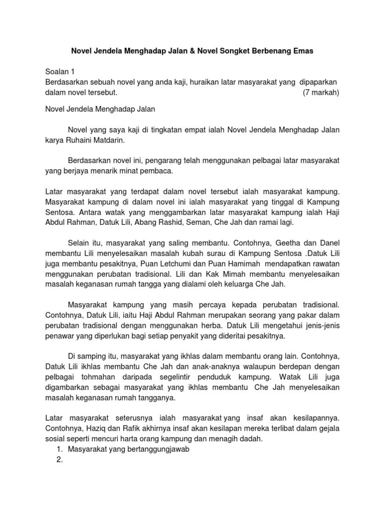 Nota Novel Jendela Menghadap Jalan Dan Soalan Serta Contoh Jawapan Membalik Buku Halaman 1 18 Anyflip